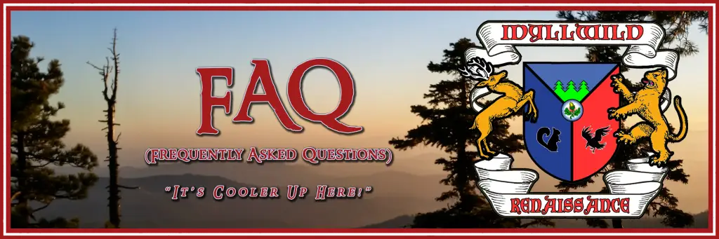 3. Can I bring my weapons/props.? – Yes. All weapons/props must be peace tied and rendered unusable. Our security staff will inspect these weapons/props for compliance with our peace tied requirements. Their decisions are final. Any brandishing or drawing of weapons/props will be cause for immediate removal from the Faire with no refunds.
